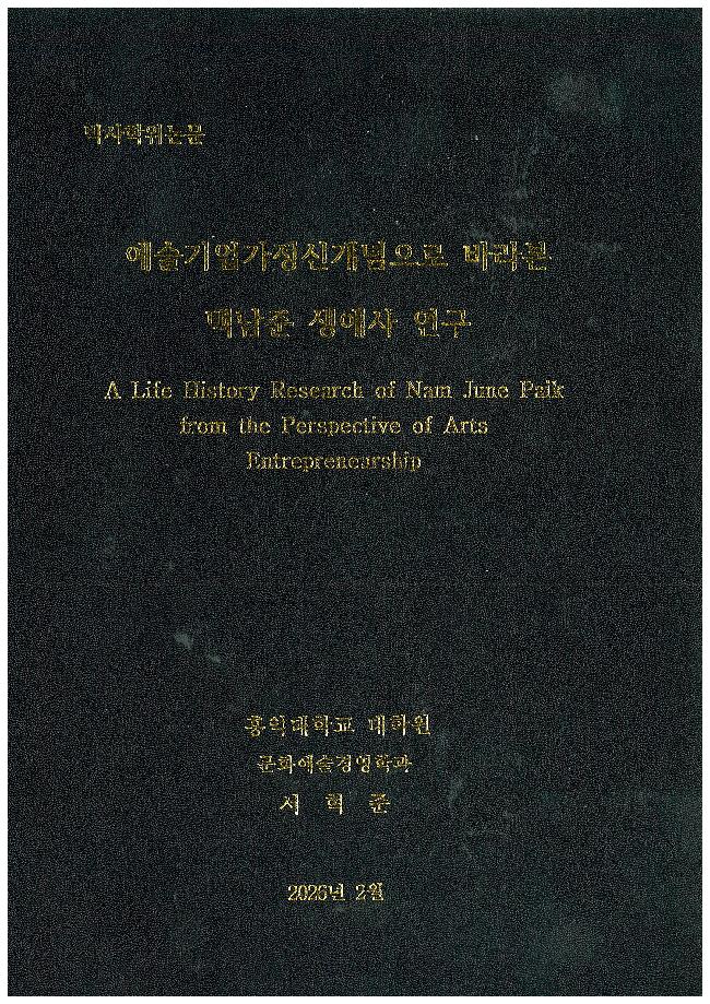 예술기업가정신개념으로 바라본 백남준 생애사 연구, 서혁준, 2026